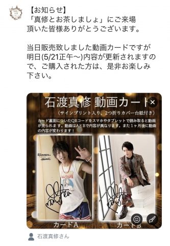 「真修とお茶しましょ」よりお知らせ!